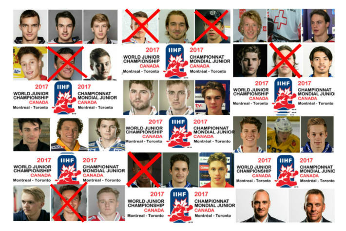 Stürmer: (13): Dominik Diem (GCK Lions), Nando Eggenberger (HC Davos), Fabian Haberstich (EVZ Academy), Timo Haussener (EVZ Academy), Nico Hischier (Halifax Mooseheads / QMJHL), Loic In Albon (Lausanne HC), Nathan Marchon (HC Fribourg-Gottéron), Marco Miranda (GCK Lions), Jerôme Portmann (HC Davos), Raphael Prassl (GCK Lions), Damien Riat (Genève-Servette HC), Calvin Thürkauf (Kelowna Rockets / WHL), Yannick Zehnder (EVZ Academy).