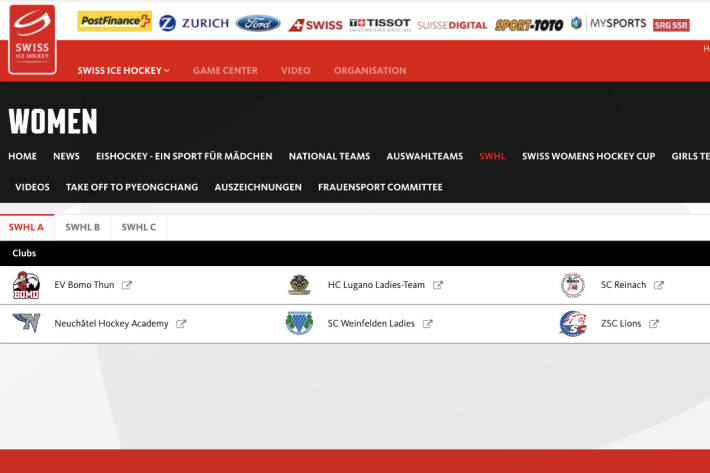 SWHL A (6): ZSC Lions, Ladies Lugano, Bomo Thun, Reinach, Neuchâtel Hockey Academy, Weinfelden